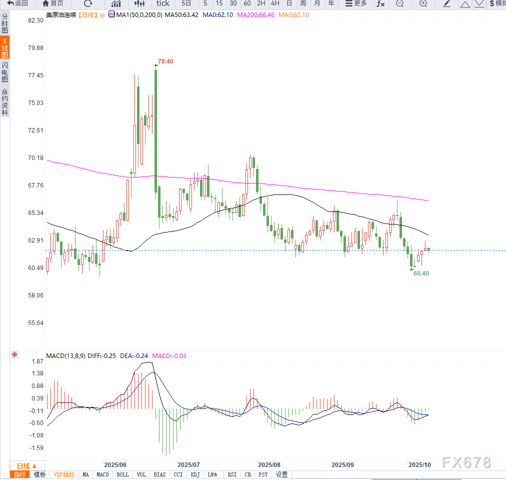编辑观点:   从基本面与技术面结合来看,当前油价的疲软不仅源于库存增加和供应预期上升,更反映了市场对未来需求复苏的不确定性。若中东局势持续平稳、美国库存维持高位,油价或继续承压。   应关注WTI在61美元的关键支撑区域,一旦跌破,该区间可能成为新一轮下探的触发点。整体而言,市场重心正逐步下移,短期反弹空间有限。